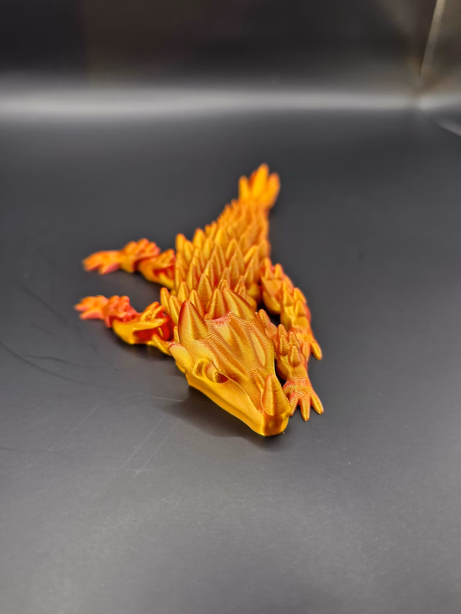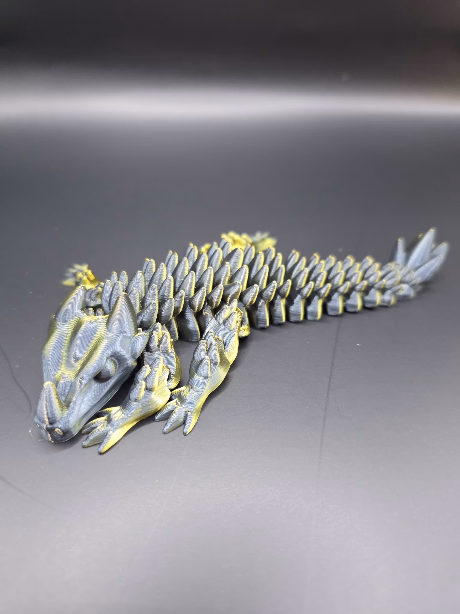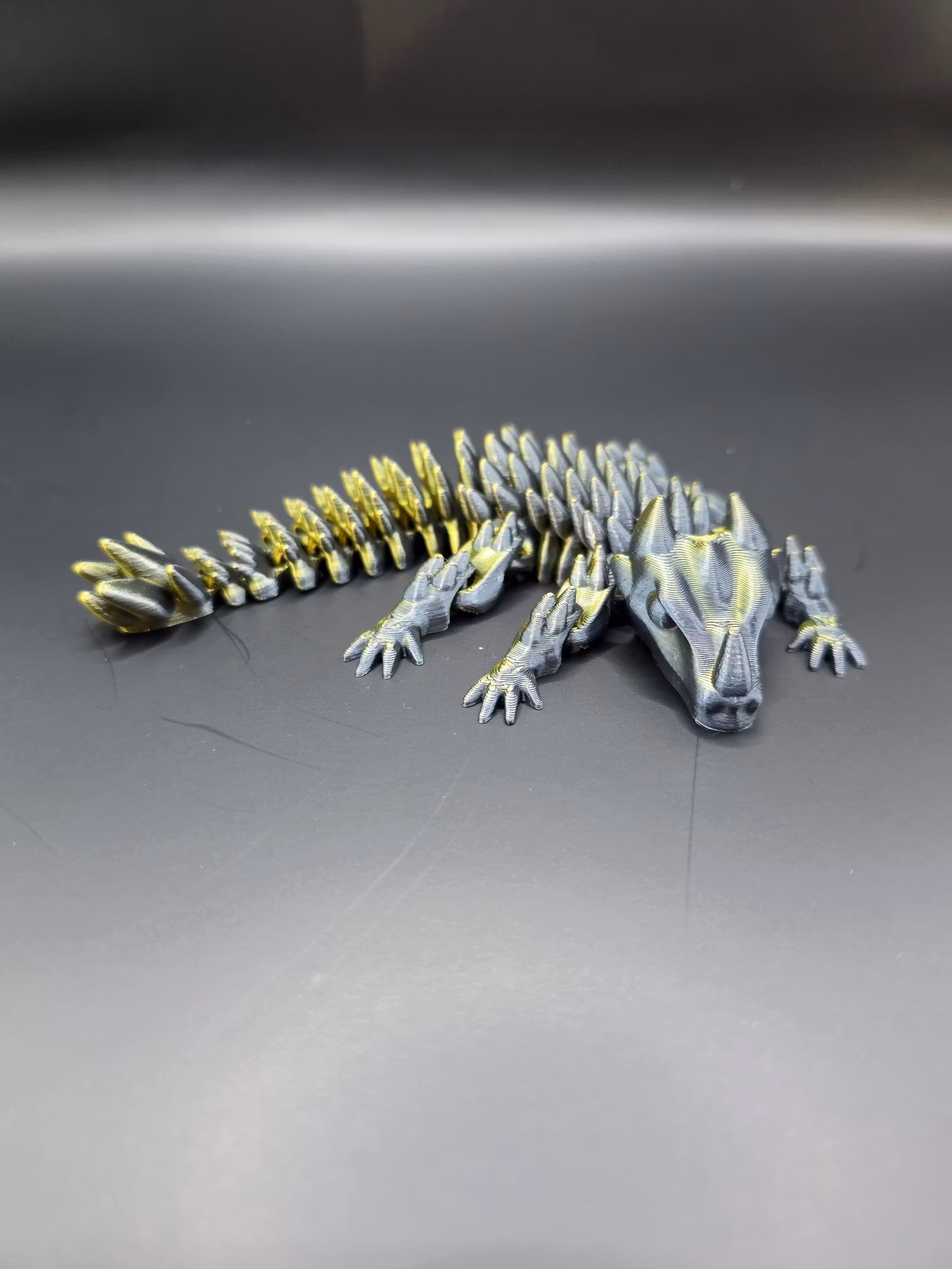 Upptäck vår Mini Flexi Dragon, en detaljerad och rörlig 3D-printad drakfigur i miniatyr.
